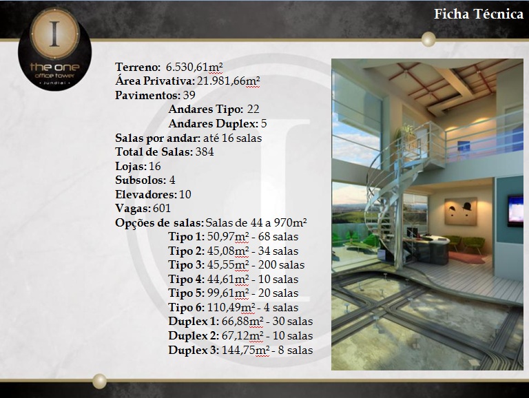 Salas Comerciais de 45 a 970m² com opções em duplex. Projeto inovador e requintado, com espaços amplos e que agradarão aos gostos mais exigentes, como o seu. Conheça esse novo conceito em prédios comerciais e de alto padrão para a região. TECNOLOGIA E INOVAÇÃO: O primeiro da região com Heliponto, construído para proporcionar mobilidade e conforto.